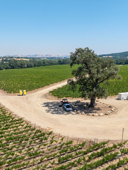 Santa Rita Creek Vineyard, named for the winding Santa Rita Creek that borders it on three sides, is nestled in the heart of the Templeton Gap Sub-AVA. This unique location benefits from the cooling afternoon winds characteristic of the “Gap,” creating an ideal climate for grape ripening in late summer. Designed in 2021 and planted in 2022, every aspect of the vineyard, including row orientation, planting density, and irrigation layout, was carefully planned based on thorough soil and climate analysis, with the primary goal of maximizing the quality of each section of the property. The vineyard’s soil is composed of deep marine layers, transitioning to a surface rich in cobblestones, which reflects the direct influence of its namesake’s creek, adding depth and character to the fruit grown here. Being surrounded by a creek, oaks, and abundant wildlife, strong consideration is given to preserving the flora and fauna which were there long before vines. The vineyard is SIP Certified and chemical alternatives are regularly utilized to manage pests.